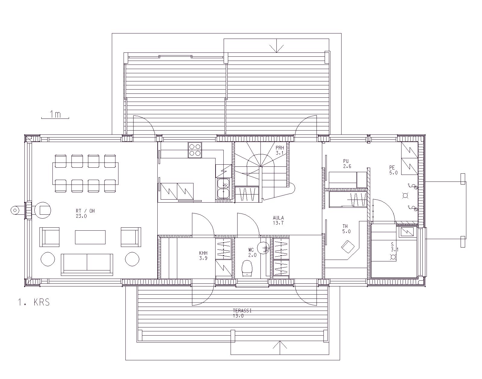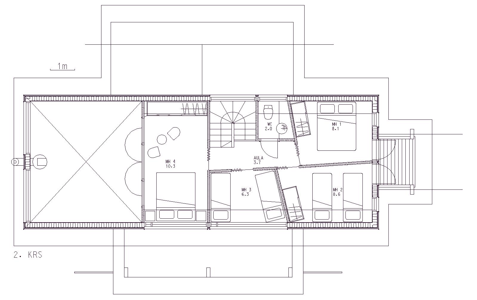 - 4 makuuhuonetta, olohuone jossa takka, keittiö, sauna, 2kpl WC, kylpyhuone